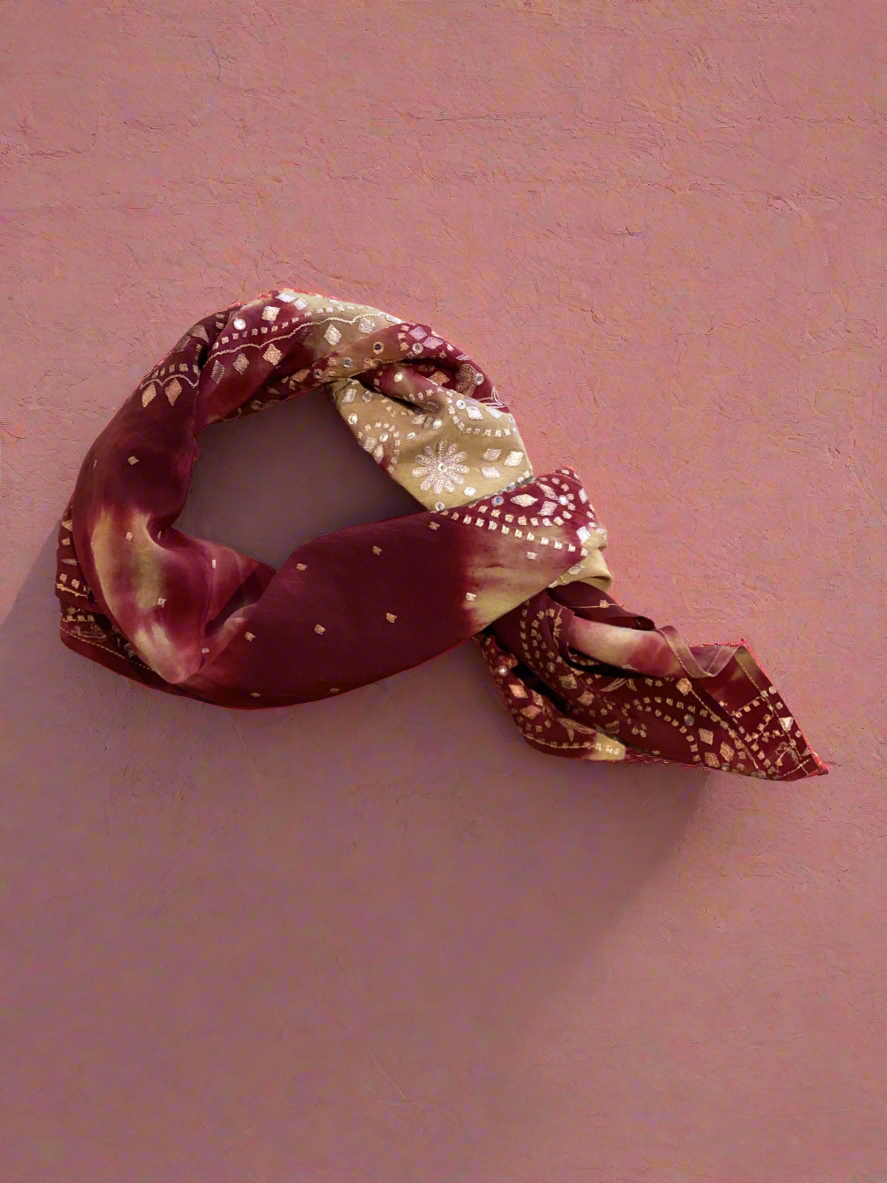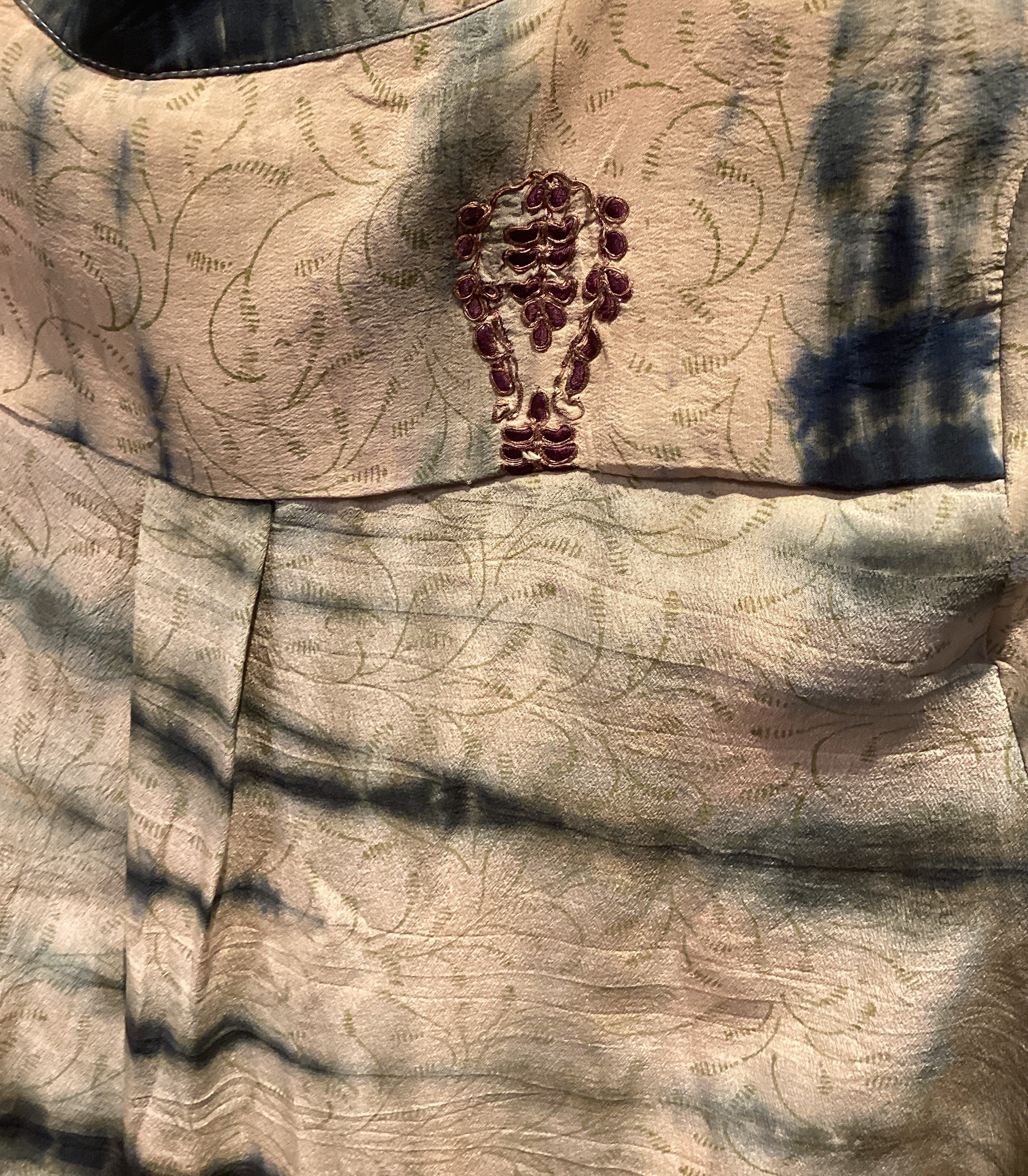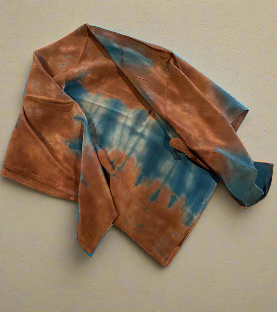 En reversibel kort kimono fra danske Cofur, laget for å kunne brukes begge veier! Denne kimonoen er et unikt one-of-a-kind plagg, som alle Cofur-kreasjoner, laget fra tidligere brukt silkesarie materiale.