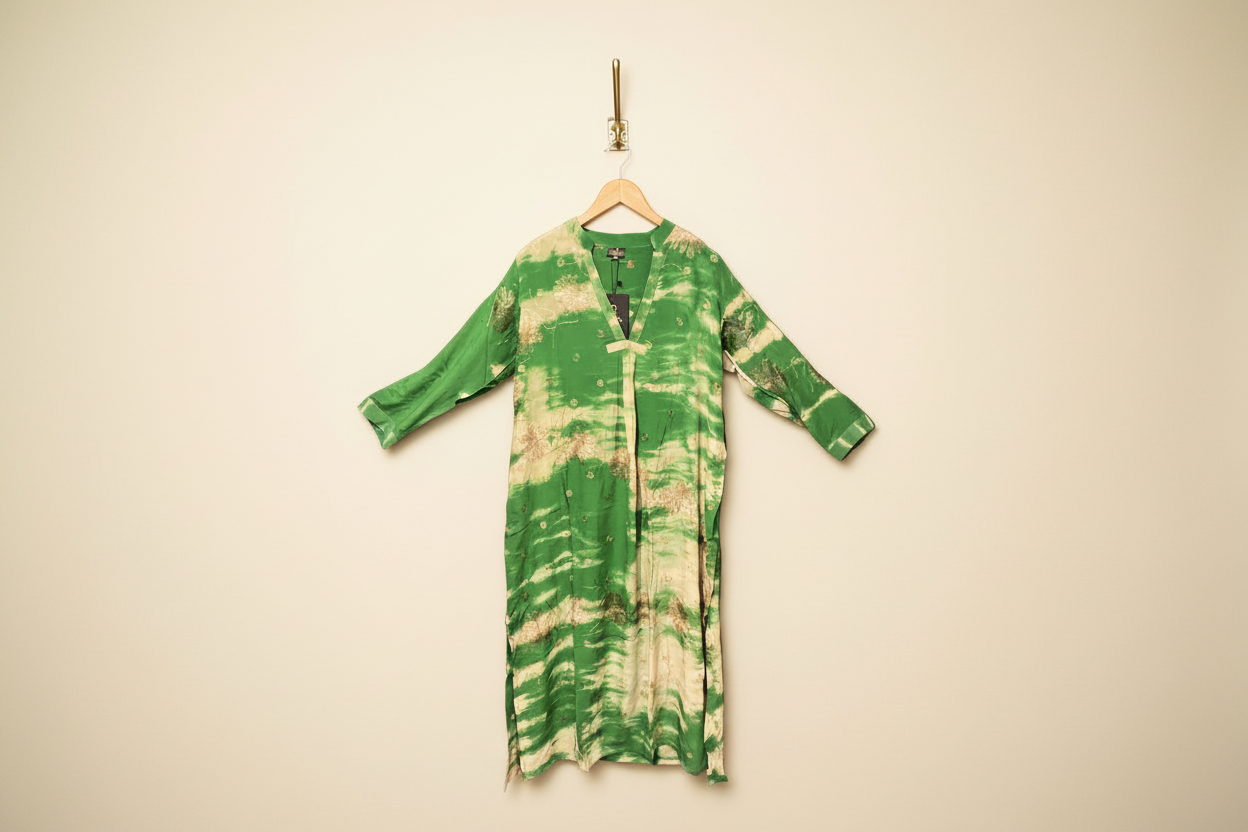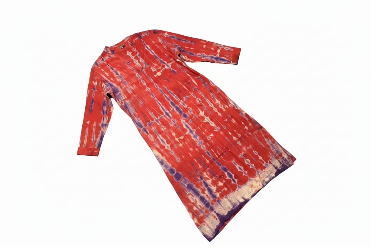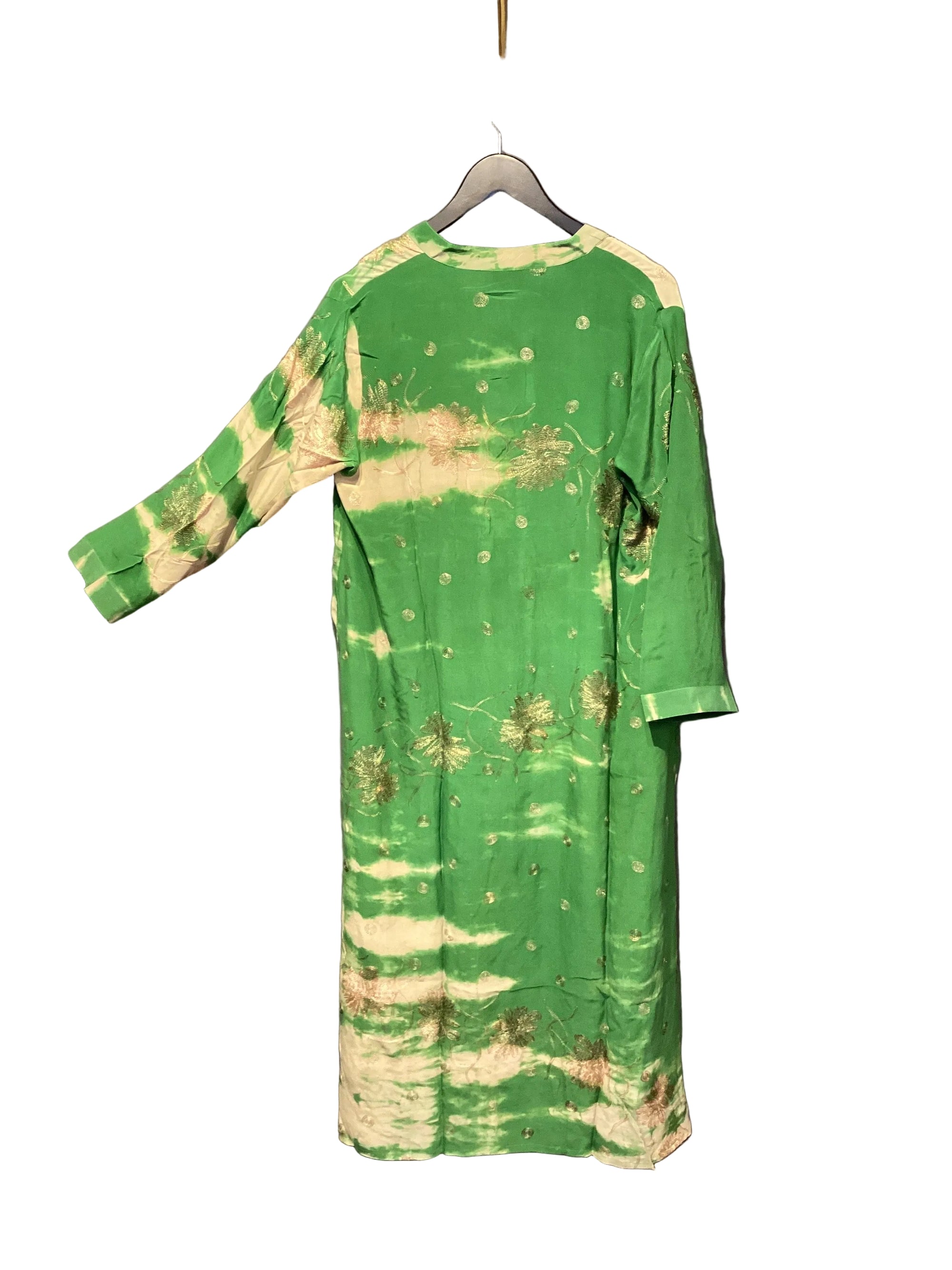 Jakken har lange ermer og er lett vattert, med knapper foran og subtile kontrastdetaljer på skuldrene. Disse diskrete detaljene balanserer den avslappede silhuetten med håndverksmessig presisjon.