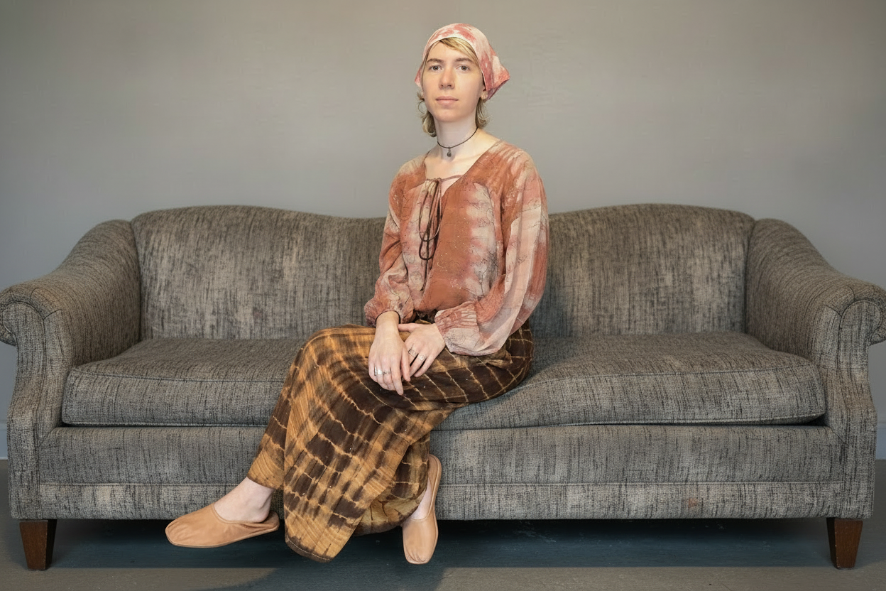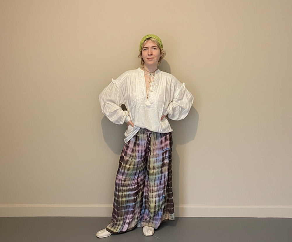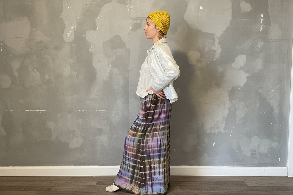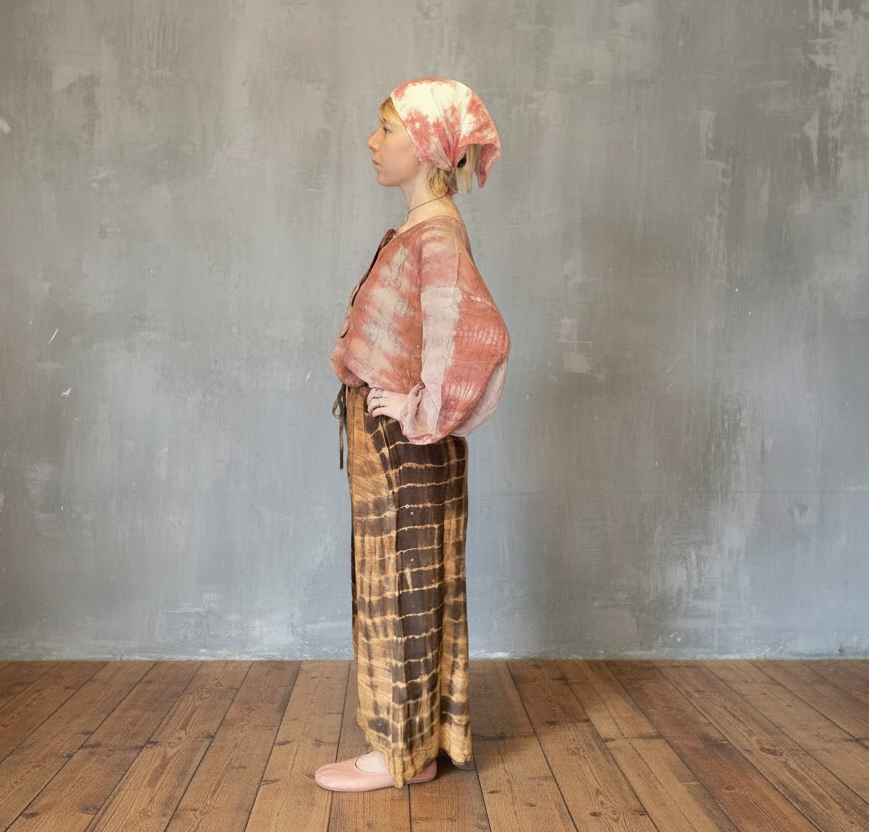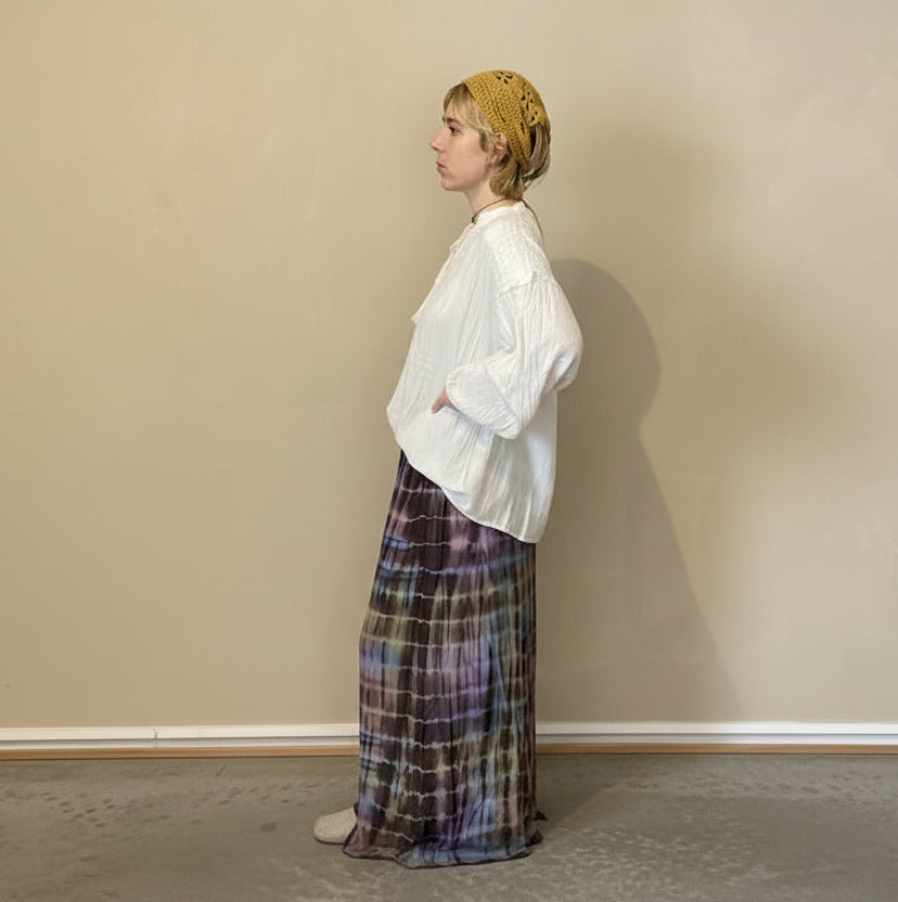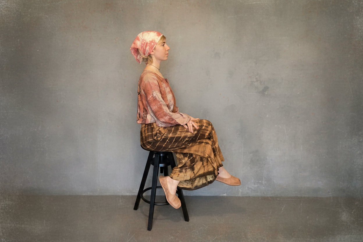 Sydd i bomullsdobby, strukturert, men myk å ta på, vattert for lett struktur og varme. Fargen er jevn, verken mørk eller lys, som en storm i ro.